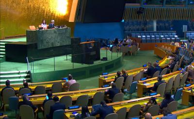 संयुक्त राष्ट्र महासभेत न्यूयॉर्क डिक्लेरेशनला मंजुरी देण्यात आली. ज्यात गेल्या अनेक दशकांपासून सुरू असलेल्या वादावर तोडगा काढण्यासाठी योजनाबद्ध प्रस्ताव होता. या प्रस्तावाच्या बाजूने १४२ मते पडली तर १० देशांनी याचा विरोध केला. १२ देशांनी मतदानापासून दूर राहण्याचा निर्णय घेतला होता.