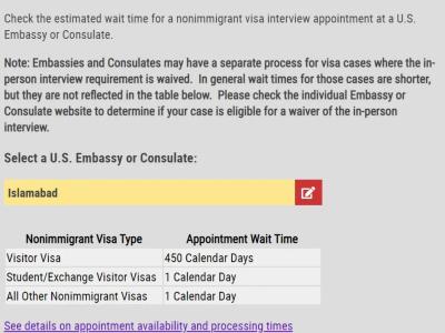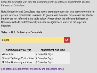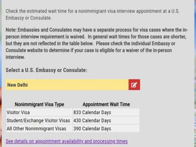 यूएस स्टेट डिपार्टमेंट वेबसाइट दाखवते की दिल्लीहून व्हिसा अर्जांसाठी ८३३ दिवस आणि मुंबईतून अर्ज करण्यात आलेल्यांना ८४८ दिवसांची अपॉइंटमेंटसाठी प्रतीक्षा करावी लागत आहे. याउलट, चीनची राजधानी बीजिंगची वेटिंग कालावधी केवळ २ दिवसांचा आहे. तर पाकिस्तानची राजधानी इस्लामाबाद येथून अर्जांसाठी वेटिंगचा काळ ४५० दिवस आहे.