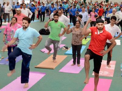 बीसीसीआयचे अध्यक्ष अनुराग ठाकूर क्रिकेटपटू हरभजन सिंग यांच्यासह अनेक खेळाडूंनीही योगसने केली.