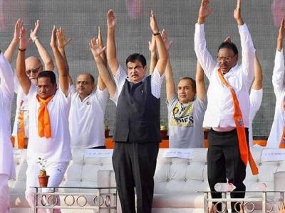 नागपूरमध्ये केंद्रीय रस्ते वाहतूक व दळणवळण मंत्री नितीन गडकरी यांच्यासह अनेकांनी योगसाधना केली.
