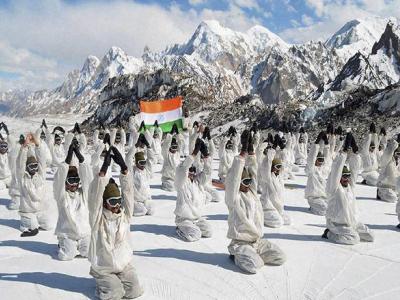 सियाचीनमधल्या बर्फात जवानांनी योगदिन साजरा केला.