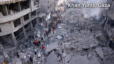 इस्राइलच्या विध्वंसक हल्ल्यामध्ये मोठमोठ्या इमारती क्षणार्धात भुईसपाट होत आहेत.