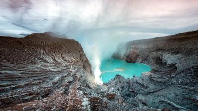 इंडोनेशियाच्या जावामध्य बानयूवांगी रीजेंसी आणि बोंडोवोसो रीजेंसीच्या सीमेवर असा ज्वालामुखी ज्यातून निळा लाव्हारस निघतो. हा ज्वालामुखी आपल्या चार गोष्टींसाठी ओळखला जातो. पहिला निळा लाव्हा, निळी आग, अॅसिडीक क्रेटर झील आणि सल्फरच्या खननासाठी. या ज्वालामुखीचं नाव आहे कावा इजेन ज्वालामुखी. (फोटोः मशूदी सोजोनो/अन्स्प्लैश)
