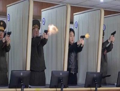 किम जोंग उन यांनी कारखान्यावर पिस्तूलमधून गोळ्या झाडून आपल्या लष्करी सामर्थ्याचे प्रदर्शन केले.
