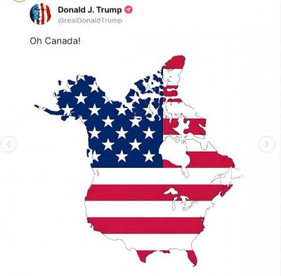 डोनाल्ड ट्रम्प यांनी सोशल मीडिया प्लॅटफॉर्म ट्रूथवर आधी एक नकाशा शेअर केला. त्यामध्ये त्यांनी कॅनडा हा अमेरिकेचा भाग दाखवला आहे. त्यांनी हा नकाशा शेअर करत लिहिले की, ‘’ओह कॅनडा!’’, त्यानंतर त्यांनी आणखी एक नाकाशा शेअर केला. त्यावर लिहिलं की ‘’युनायटेड स्टेट’’, डोनाल्ड ट्रम्प हे कॅनडाचा अमेरिकेचं ५१ वं राज्य म्हणून वारंवार उल्लेख करत आहेत.