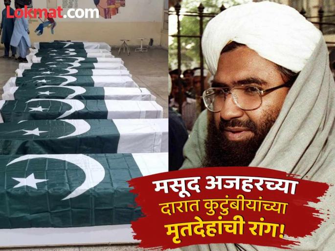1 / 7Masood Azhar News in Marathi: भारतासाठी मोस्ट वॉन्टेड असलेल्या जैश ए मोहम्मदचा म्होरक्या मसूद अजहरवर भारतीय लष्कराने न विसरता येणारा घाव घातला. ऑपरेशन सिंदूर राबवताना भारताने जैश ए मोहम्मदच्या मुख्यालयच उडवले. यात मसूदच्या कुटुंबातील दहा लोकही ठार झाले.2 / 7७ मे रोजी भारतीय लष्कराने केलेल्या हल्ल्यात कुटुंबातील दहा जण आणि जवळचे चार असे एकूण चार लोक मारले गेल्याचे मसूद अजहरनेच सांगितलं आहे. त्याचे पत्रही समोर आले आहे. यात त्याने भारताच्या हल्ल्यात कोण कोण मारले गेले, हेही सांगितले.3 / 7७ मे रोजी भारतीय लष्कराने केलेल्या हल्ल्यात कुटुंबातील दहा जण आणि जवळचे चार असे एकूण चार लोक मारले गेल्याचे मसूद अजहरनेच सांगितलं आहे. त्याचे पत्रही समोर आले आहे. यात त्याने भारताच्या हल्ल्यात कोण कोण मारले गेले, हेही सांगितले.4 / 7यात जैश ए मोहम्मदचा म्होरक्या मसूद अजहरची मोठी बहीण, तिचा पती, त्याचा एक पुतण्या आणि त्याची पत्नी, एक भाची आणि कुटुंबातील पाच मुलं मारले गेले आहेत. इतर चार जण मारले गेले आहेत, ते मसूदच्या जवळचेच नातेवाईक होते. 5 / 7हल्ल्यात ठार झालेल्या मसूद अजहरच्या कुटुंबीयांच्या मृतदेहांचा एक फोटो समोर आला आहे. त्यात सर्व मृतदेह शवपेट्यांमध्ये आहेत आणि त्यावर पाकिस्तानचा ध्वज ठेवलेला असल्याचे दिसत आहे.6 / 7या हल्ल्यानंतर मसूद अजहरचे एक ऊर्दूतील निवेदनही समोर आले आहे. ज्यात त्याने म्हटले आहे की, माझ्या कुटुंबातील दहा लोक मारले गेले आहेत. माझी मोठी बहीण साहिबा, तिचा पती खाविंद, माझा पुतण्या फाजिल, त्याची पत्नी, माझी भाची आलिमा फाजिला, माझा आधीपासूनचा मित्र हुजैफा आणि दोन साथी यांच्यासह १४ जण मारले गेले आहेत.7 / 7हा आघात इतका भयंकर आहे की, शब्दही सूचत नाहीत. पण, मला पश्चाताप नाहीये, मी दुःखी पण नाहीये. आणि मी मागेही हटणार नाही. पण, मनात सारखा एक विचार येतोय की या १४ जणांसोबत मला मृत्यू यायला पाहिजे होता, असेही त्याने पत्रात म्हटले आहे.