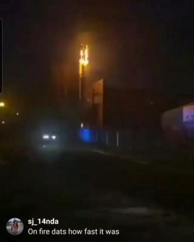 बर्मिंगहॅममधील मोबाईल टॉवर पेटवून दिल्याचा एक व्हिडीओ सोशल मीडियावर व्हायरल झाला.
