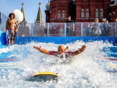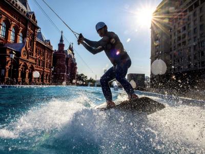 मॉस्कोच्या रहिवाश्यांनी लुटला वेकबोर्डिंगचा आनंद!