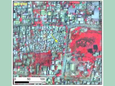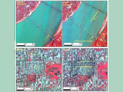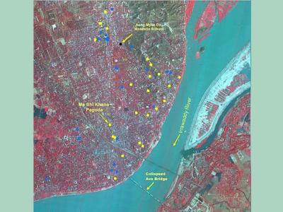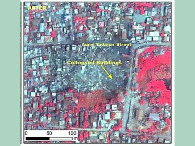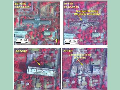 यात मांडले विद्यापीठ आणि अनंदा पॅगोडाचे झालेले नुकसान चित्रामध्ये दिसत आहे. इस्रोच्या नॅशनल रिमोट सेन्सिंग सेंटरने सांगितले की, हे फोटो शनिवारी (२९ मार्च) घेण्यात आले. १८ मार्च रोजी घेण्यात आलेल्या फोटोंशी तुलना करून याचे आकलन करण्यात आले आहे.