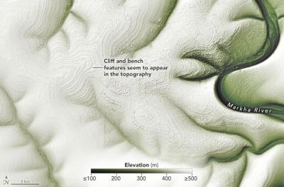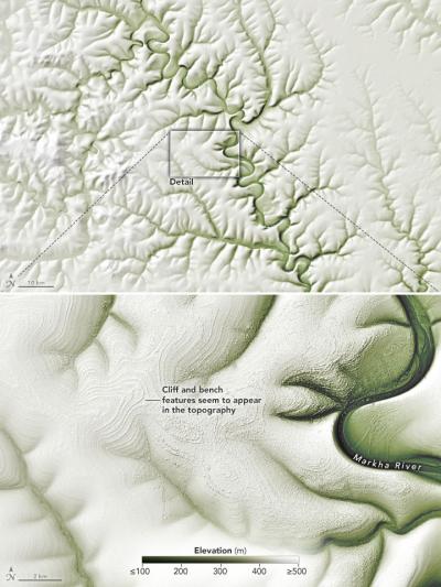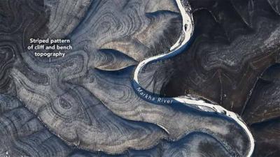 नासा द्वारे अनेक वर्षांपासून लॅंडसॅड ८ ने कॅप्चर केलेल्या या फोटोंमध्ये जमिनीवर वेगळाच आकाराच्या रेषा दिसत आहे. मर्खा नदीच्या दोन्ही बाजूने दाट आणि हलक्या दोन्ही प्रकारच्या रेषा दिसत आहेत.