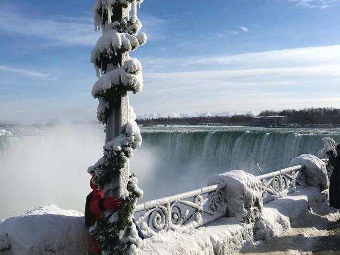 उत्तर अमेरिकेतील नायगरा धबधबा गोठला बर्फाने, पर्यटकांची वाढली गर्दी