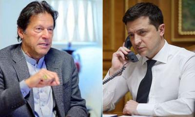 इम्रान खान आणि झेलेन्स्की यांच्यात मंगळवारी फोनवर चर्चा झाली. या संभाषणात इम्रान खान यांनी पाकिस्तानच्या बाजूचा पुनरुच्चार केला आणि दोन्ही देशांनी (रशिया-युक्रेन) तातडीने तणाव संपवण्याची आणि मतभेद राजनैतिक मार्गाने सोडवण्याची गरज असल्याचं सांगितलं.