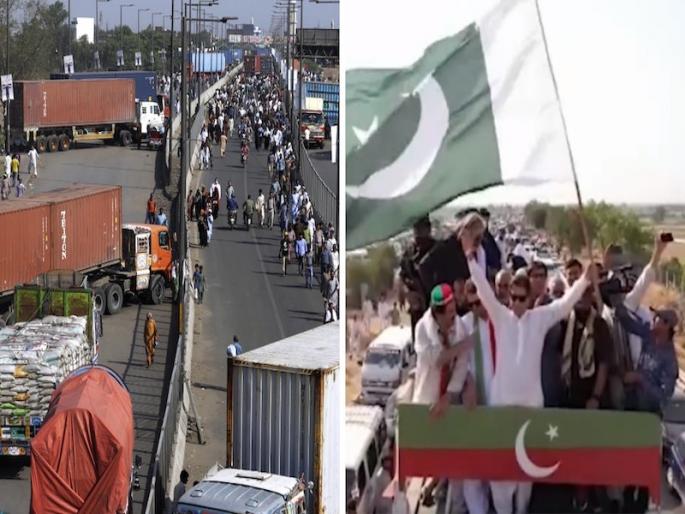 1 / 7पाकिस्तानमध्ये सत्तापरिवर्तन झाल्यानंतर आता परिस्थिती सुधारण्याऐवजी आणखी बिघडत असल्याचे दिसून येत आहे. निवडणुकीच्या मागणीसाठी पाकिस्तानचे माजी पंतप्रधान इम्रान खान आपल्या समर्थकांसह इस्लामाबादमध्ये दाखल झाले आहेत. इम्रान खानच् यांच्या या ‘आजादी मार्च’ या रॅलीला रोखण्यासाठी पाकिस्तान सरकारने लष्करही तैनात केले आहे.2 / 7आंदोलक आणि सुरक्षा जवानांमध्ये चकमक झाल्याचेही माहिती समोर आली आहे. इतकंच नाही तर, हिंसक झालेल्या इम्रान खान यांच्या समर्थकांनी चायना चौक येथील मेट्रो स्टेशनही पेटवून दिल्याचं वृत्त पाकिस्तानातील समा न्यूजनं दिलं आहे.3 / 7दरम्यान, इस्लामाबाद येथे पोहोचण्यापूर्वीच कार्यकर्ते आणि पोलिसांच्यामध्ये बाचाबाची झाली. यानंतर अनेक कार्यकर्त्यांना अटक करण्यात आली. बिघडलेली परिस्थिती पाहता पाकिस्तान सरकारनं लष्कराला शहरात तैनात करण्याचे आदेश दिले आहेत.4 / 7इम्रान खान यांनी देशात लवकर निवडणुका लागू करण्यासाठी ‘आजादी मार्च’ची घोषणा केली होती. परंतु या रॅलीत सहभागी झालेले कार्यकर्ते हिंसक झाल्याचंही पाहायला मिळालं. काही आंदोलकांनी इस्लामाबादमध्ये गाड्यांना आग लावली, तर झाडंही जाळली. 5 / 7इम्रान खान यांच्या समर्थकांना डी चौक, इस्लामाबादकडे जाण्यापासून रोखण्यात आलं आहे. यानंतर पोलीस आणि पीटीआयच्या कार्यकर्त्यांमध्ये बाचाबाची झाल्याचीही माहिती समोर आली.6 / 7इम्रान खान यांनी या रॅलीला समर्थन करण्यास सांगत पाकिस्तानातील लोकांना रस्त्यावर उतरून विरोध दाखवण्याचं आवाहन केलं आहे. तसंच महिला आणि मुलांनादेखील बाहेर येऊन विरोध करण्याचं आवाहन त्यांनी केलं. डी चौकवर रात्री अडीच वाजल्यापासून गोळीबार सुरू आहे. इम्रान खान येण्यापूर्वी ते किती राऊंड फायरिंग करतील हे माहित नाही, अशी प्रतिक्रिया पंजाब प्रांताचे सीनेटर एओन अब्बास बुप्पी यांनी दिली.7 / 7इस्लामाबादमध्ये बिघडणारी परिस्थिती पाहता पाकिस्तानच्या संविधानाच्या कलम २४५ नुसार पाकिस्तानात लष्कर तैनात केलं जात आहे, अशी माहिती पाकिस्तानातील मंत्री राणा सनाऊल्लाह यांनी ट्विटरद्वारे दिली. सरकरानं महत्त्वाच्या ठिकाणांची सुरक्षा करण्यासाठी लष्कराला रेड झोनमध्ये तैनात केल्याचंही त्यांनी सांगितलं.
