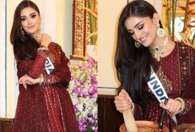 मनिका विश्वकर्मा यांनी बँकॉक येथील एका मिस युनिव्हर्स इव्हेंटदरम्यान अनारकली कुर्ता सेट परिधान केला होता.
