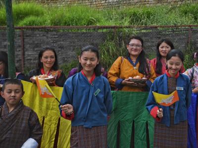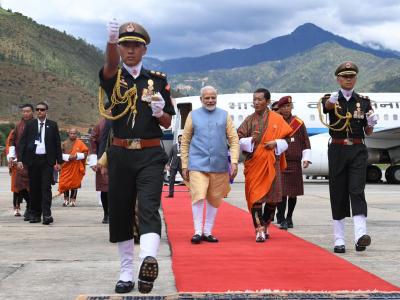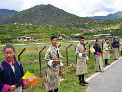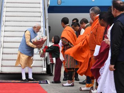 दुसऱ्या कार्यकाळात मोदी पहिल्यांदा भूतानला गेले आहेत त्यामुळे मोदींचे भूतानमध्ये जोरदार स्वागत करण्यात आलं. हजारो महिला, मुलांनी हातात तिरंगा घेत रस्त्याच्या कडेला उभं राहून त्यांचे स्वागत केले.