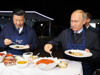 रशियाचे राष्ट्राध्यक्ष व्लादिमीर पुतिन और चीनचे राष्ट्राध्यक्ष शी जिनपिंग यांनी एकत्र येत एक पदार्थ बनवला.