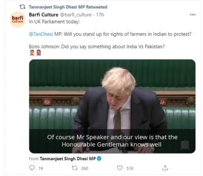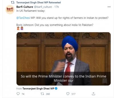 पंतप्रधान नरेंद्र मोदींशी संवाद साधून लंडनमधील शीख समुदायाच्या भावना, त्यांना आंदोलकांची वाटणारी काळजी यासंदर्भात जॉनसन यांनी चर्चा करावी, असा प्रश्न तनमनजीत सिंग यांनी विचारला होता.