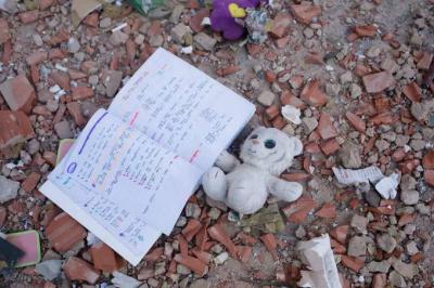 हा फोटो कीवमधील लोबानोवस्की एव्हेन्यूचा आहे. २६ फेब्रुवारी रोजी रशियानं या ठिकाणी हल्ला केला होता. रशियन सैन्यानं चिमुरड्यांनाही सोडलं नाही हे बाहेर पडलेलं वही आणि खेळणी दाखवून देत आहेत.