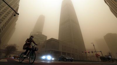 चीनमध्ये गेल्या १० वर्षांतील सर्वात धोकादायक धुळीचे वादळ आले आहे. या वादळामुळे संपूर्ण बीजिंग शहर पिवळ्या रंगाने झाकोळून गेले आहे. या वादळामुळे बीजिंगमधील हवेचा गुणवत्ता स्तर एक हजारांच्या पुढे गेला. तर ४०० हून अधिक विमान उड्डाणे रद्द करावी लागली.