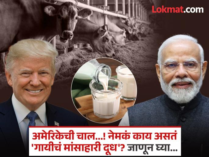 1 / 8भारत आणि अमेरिका यांच्यात ट्रेड डील अथवा व्यापार करारासंदर्भात बऱ्याच दिवसांपासून चर्चा सुरू आहे. मात्र आता त्यात काहीसा अडथळा येताना दिसत आहे. 2 / 8इंडिया टुडेच्य एका वृत्तानुसार, अमेरिकेला आपले डेअरी प्रॉडक्ट्स भारतात पाठवायचे आहेत. मात्र, भारताने याला स्पष्ट नकार दिला आहे. कारण यात, गायीचे मांसाहारी दूध पाठवण्याची अमेरिकेची इच्छा आहे. डेअरी प्रॉडक्ट्ससाठी प्रमाणपत्र लागेल, असे भारताचे म्हणणे आहे.3 / 8दूध उत्पादनाच्या बाबतीत भारत हा जगातील सर्वात मोठ्या देशांपैकी एक आहे. भारताच्या अर्थव्यवस्थेत दुग्ध क्षेत्राचा वाटा ३ टक्क्यांपर्यंत आहे. याचे एकूण मूल्य सुमारे ९ लाख कोटी रुपये एवढे आहे. 4 / 8एसबीआयच्या मते, अमेरिकेने दुग्ध क्षेत्राशी संबंधित वस्तू पाठवायला सुरुवात केली, तर भारताला दरवर्षी १.०३ लाख कोटी रुपयांचे नुकसान होऊ शकते. याशिवाय, अमेरिकेला नकार देताना भारताने धार्मिक भावनांचाही हवाला दिला आहे.5 / 8नेमकं काय असतं गायीचं मांसाहारी दूध - खरे तर, भारतात गायींना खाद्य म्हणून चारा आणि गवत दिले जाते. याशिवाय इतरही काही नैसर्गिक गोष्टी दिल्या जातात. मात्र, अमेरिकेत या सर्वांची मोठी कमतरता आहे...6 / 8...यामुळे अमेरिकेत गायींना स्वस्त प्रोटिन्सच्या स्वरुपात चाऱ्यातून डुक्कर, कोंबडी, मासे अथवा घोड्याची चरबी दिली जाते. म्हणूनच भारताने अमेरिकन दुग्धजन्य पदार्थांना नकार दिला आहे. दरम्यान, यामुळे व्यापार करारात अनावश्यक अडथळा येत असल्याचे अमेरिकेने म्हटले आहे.7 / 8भारतासोबतच्या ट्रेड डीलसंदर्भात काय म्हणाले ट्रम्प - अमेरिकेचे अध्यक्ष डोनाल्ड ट्रम्प म्हणाले, ट्रेड डीलसंदर्भात भारतासोबत सातत्याने चर्चा सुरू आहे. आम्ही भारतासोबतही इंडोनेशिया प्रमाणेच डील करणार. इंडोनेशियामध्ये कॉपर सेक्टर प्रचंड मजबूत आहे. ट्रम्प यांचे म्हणणे आहे की, त्यांना कुठल्याही टॅरिफ शिवाय, इंडोनेशियामध्ये प्रवेश मिळेल.8 / 8भारतासोबतच्या ट्रेड डीलसंदर्भात काय म्हणाले ट्रम्प - अमेरिकेचे अध्यक्ष डोनाल्ड ट्रम्प म्हणाले, ट्रेड डीलसंदर्भात भारतासोबत सातत्याने चर्चा सुरू आहे. आम्ही भारतासोबतही इंडोनेशिया प्रमाणेच डील करणार. इंडोनेशियामध्ये कॉपर सेक्टर प्रचंड मजबूत आहे. ट्रम्प यांचे म्हणणे आहे की, त्यांना कुठल्याही टॅरिफ शिवाय, इंडोनेशियामध्ये प्रवेश मिळेल.