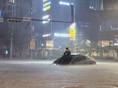 सलग ६ दिवसांच्या पावसानंतर दक्षिण कोरियात पूर आला आहे. डझनभर शहरे पाण्यात बुडाली आहेत.