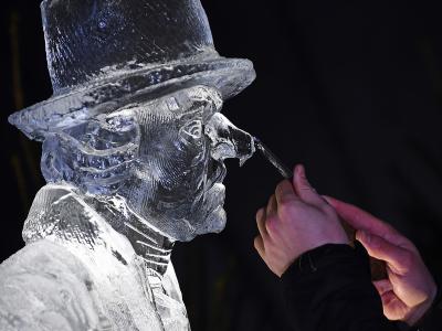 बर्फातून मूर्ती साकारणारे शिल्पकार डॅरेन जॅक्सन यांनी या मूर्ती घडवल्या आहेत.