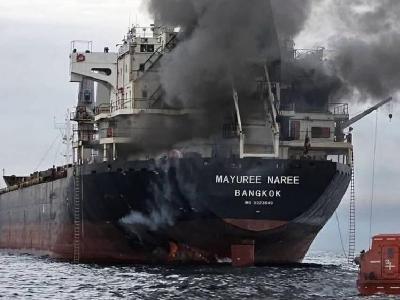 बुधवारी ११ मार्च रोजी होर्मुजच्या सामुद्रधुनीत थायलंडचा झेंडा असलेल्या 'मयूरी नारी' या महाकाय मालवाहू जहाजावर अज्ञात क्षेपणास्त्राने भीषण हल्ला केला. या हल्ल्यात जहाज आगीच्या भक्ष्यस्थानी पडले असून, जहाजावरील २३ पैकी २० कर्मचाऱ्यांना वाचवण्यात यश आले आहे, तर ३ जण अद्याप बेपत्ता आहेत.