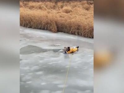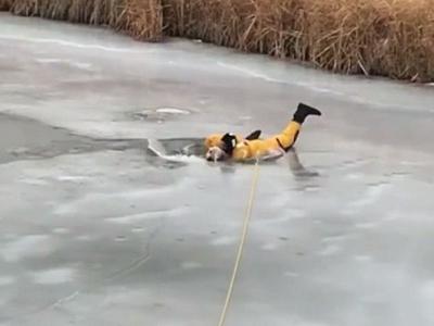 बर्फामध्ये कुत्र्याचा पाय अकला होता, त्याला हलताही येत नव्हते. हा प्रकार जेव्हा कुत्र्याच्या मालकाला दिसला तेव्हा त्यांनी त्वरीत अग्निशमक दलाला पाचारण केलं.