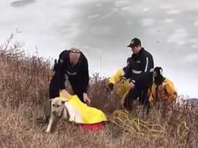 लंडनमध्ये बर्फाच्या नदीत अडकलेल्या एका कुत्र्याला अग्निशामक दलातील जवांनानी शर्थीचे प्रयत्न करून वाचवलं