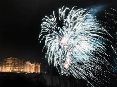 ग्रीसमधील अथेन्समधील आतषबाजी.