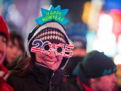 न्यूयॉर्कमधील टाईम स्क्वेअर येथे नववर्षाच्या स्वागतासाठी जमलेली तरुणाई.