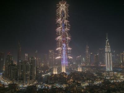 दुबई - दुबईमध्ये गगनचुंबी इमारतींवर रोषणाई आणि फटाक्यांची आतषबाजी करून नववर्षाचं स्वागत करण्यात आले.