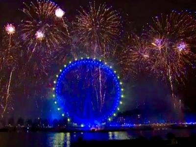 लंडन (इंग्लंड) - नववर्षाच्या स्वागतासाठी लंडन फटाक्यांच्या आतषबाजीमध्ये असे उजळून निघाले होते.