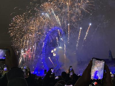 लंडन (इंग्लंड) - नववर्षाच्या स्वागतासाठी जमलेली मंडळी फटाक्यांच्या आतषबाजीचे क्षण आपल्या मोबाईलमध्ये टिपून घेत होती.