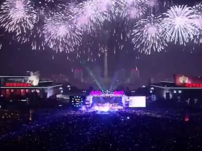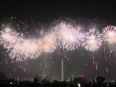 उत्तर कोरिया - फटाक्यांच्या आतषबाजीमध्ये उजळून निघालेला परिसर