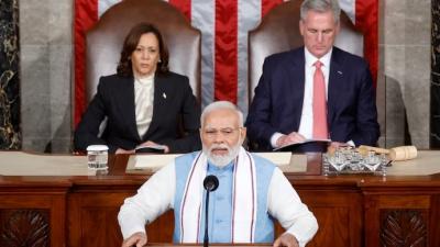 अमेरिकेचे राष्ट्राध्यक्ष ज्यो बायडन आणि प्रथम महिला जिल बायडन यांच्या निमंत्रणावरून भारतीय पंतप्रधान नरेंद्र मोदी हे राजकीय दौऱ्यासाठी अमेरिकेत पोहचले होते. गुरुवारी त्यांनी अमेरिकन संसदेच्या संयुक्त अधिवेशनाला संबोधित केले.
