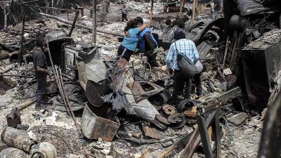 ६१ वर्षांच्या सुआरेझ त्यांच्या घरातून काही प्लेट आणि पोर्सिलीनपासून तयार केलेली एक बाहुलीच बाहेर काढू शकले. आता जळालेल्या घरात त्या जुने दागिने शोधत आहेत.