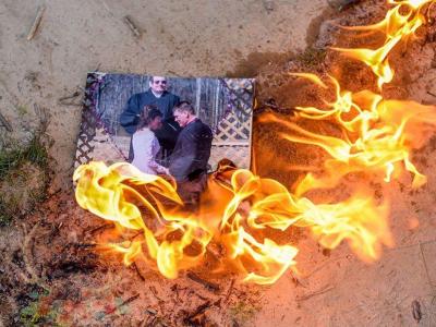 सोशल मिडीयात या महिलेने जे फोटो अपलोड केले त्यात हातात वाईनचा ग्लास पकडत तिच्या लग्नाचे फोटो जाळत असल्याचं चित्र दिसलं. या महिलेचं नावं मैरी लॉलिस असं आहे.