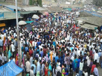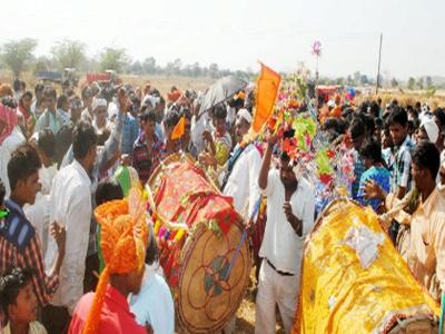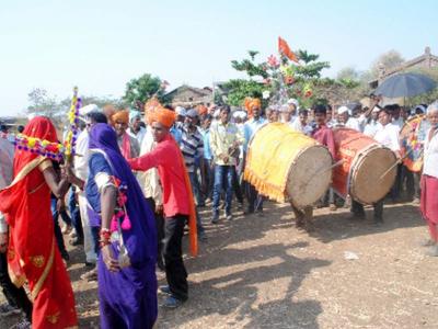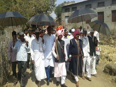 नंदुरबार जिल्ह्यातील शहादा तालुक्यातील म्हसावद येथे झालेल्या भोंग-या बाजारातील मिरवणुकीत सहभागी ग्रामस्थ़