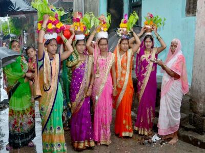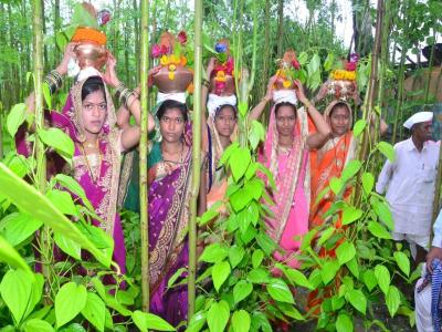 कलशधारी पाच सुवासिनी महिलांनी नागवेलीच्या पुजेत सहभाग घेतला.