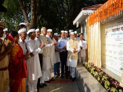 महात्मा गांधी उद्यानात कोनशिला अनावरण प्रसंगी उपस्थित जैन उद्योग समुहाचे चेअरमन अशोक जैन, जलसंपदा मंत्री गिरीश महाजन, महात्मा गांधी यांचे पणतू तुषार गांधी, माजी मंत्री सुरेशदादा जैन, जिल्हाधिकारी किशोरराजे निंबाळकर, जैन उद्योग समुहाचे उपाध्यक्ष अनिल जैन, संघपती दलीचंद जैन, आमदार स्मिता वाघ, पोलीस अधीक्षक दत्तात्रय कराळे.