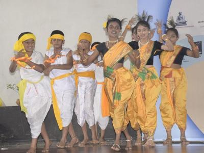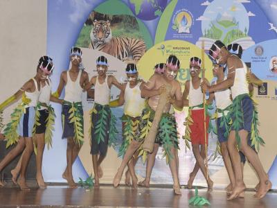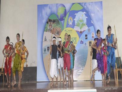 वसुंधरा महोत्सवात लोकनृत्य सादर करताना विद्यार्थी.