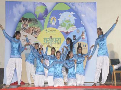 वसुंधरा महोत्सवात समूह नृत्य सादर करताना विद्यार्थीनी