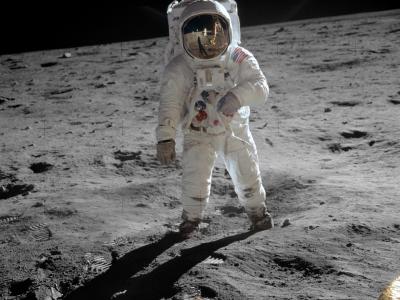 २) नील आर्मस्ट्रॉंगने अंतराळवीर Buzz Aldrin याचे फोटो ७० मिमीच्या कॅमेराने घेतले होते. (Image Credit : slco.org)