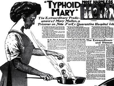 टायफॉइड मेरी एक प्रसिद्ध महिला होती. ती आयरिश महिला होती आणि तिचं पूर्ण नाव मेरी मल्लन होतं. ती १८८० मध्ये अमेरिकेत आली होती. तिच्या टायफॉइडच्या तापाचे कोणतेही लक्षणे नव्हती, पण तिच्या रक्तात टायफॉइडचे बॅक्टेरिया होते. ही बाब डॉक्टरांनी तिला समजावण्याचा प्रयत्न केला. कारण तिला तापच येत नव्हता. पण ती हे मानायला तयारच नव्हती. ती लोकांच्या घरात स्वयंपाकाचं काम करत होती. असे म्हणतात की, तिनेच टायफॉइडच्या बॅक्टेरियाने अनेकांना संक्रमित केलं होतं. ज्यात अनेकांचा मृत्यू झाला होता.