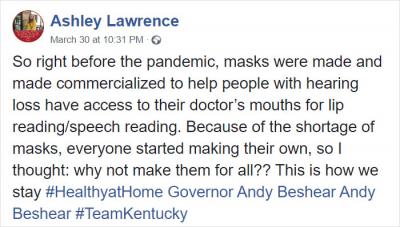 या विद्यार्थिनीचं नाव आहे एशले लॉरेंज. तिने मास्कचा तुटवडा लक्षात घेता, अशा लोकांसाठी मास्क तयार करण्याचा निर्णय घेतला ज्यांना ऐकायला येत नाही किंवा ज्यांना कमी ऐकायला येतं.