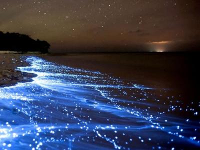समुद्रकिनाऱ्यावरील हा फोटो स्वर्गसुखाचा आनंद देणारा आहे. तुम्ही म्हणाल या समुद्राचं पाणी असं कसं आहे. तर या समुद्रात असलेल्या जेली फिशमुळे या किनाऱ्यावर निळा प्रकाश मारल्याचा भास होतोय. खरं तर हा एक निसर्गाचा चमत्कारच आहे.