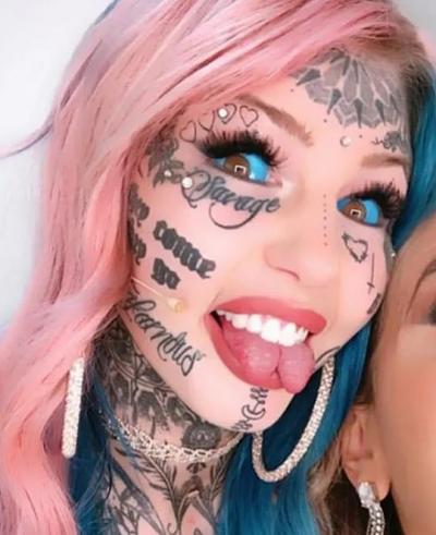 या प्रक्रियेत झालेल्या एका छोट्या चुकीमुळे तिची दृष्टी ३ आठवड्यांसाठी गेली होती. याशिवाय तिने आपली जीभ मध्यभागातून कापली आहे (Split Tongue) आणि कपाळावर शिंगे देखील बसवली आहेत.