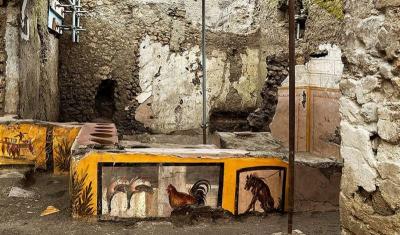 दोन हजार वर्षांपूर्वी माती खाली दाबलं गेलेलं एक कँटीन खोदकामात दिसून आलं आहे. या कँटीनमध्ये काही डब्बे सापडले आहेत. या डब्यांमध्ये काही खाण्याच्या वस्तू असाव्यात असा अंदाज लावला जात आहे. या कँटीनमध्ये मेन्यू कार्ड भीतींवर छापण्यात आले होते. पारंपारिक चुल्हासुद्धा आढळला आहे. जेवण गरम करण्यासाठी मातीच्या भांड्याचा वापर केला जात होता.