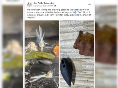 अमेरिकेतील एका शिकाऱ्यानं १३ फुट लांब मगरीची शिकार केली आणि जेव्हा त्यानं या मगरीचं पोट फाडलं तेव्हा शिकारीच सून्न झाला.